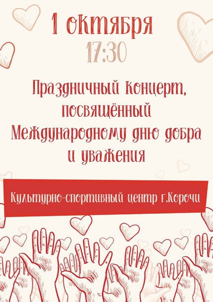 1 октября в 17:30 в Культурно-спортивном центре г. Корочи состоится концерт, посвященный Дню добра и уважения!