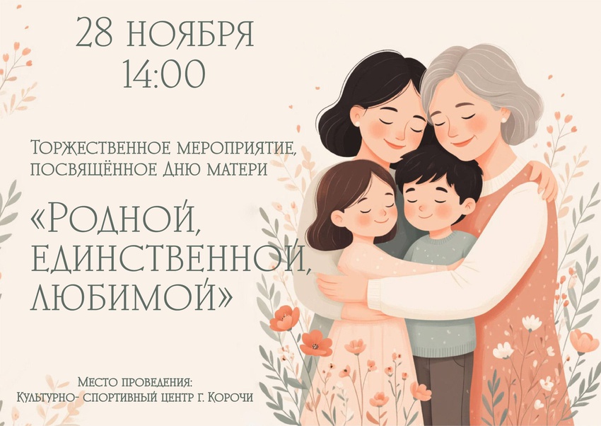 С радостью приглашаем вас нторжественное мероприятие, посвященное Дню матери! Этот замечательный праздник — прекрасная возможность выразить свою любовь и благодарность самым дорогим и близким людям в нашей жизни.
