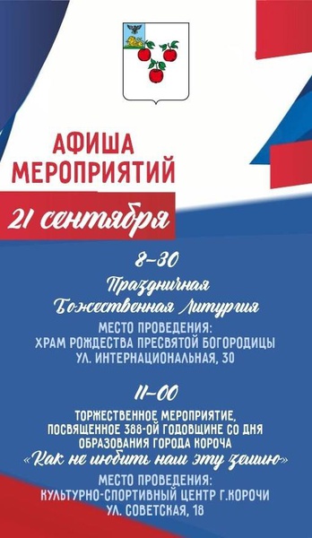 Афиша мероприятий в честь 388-й годовщины со дня образования города Короча✨