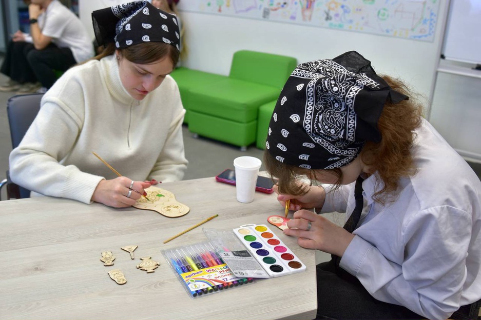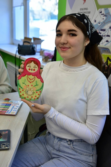 Студенты смогли проявить себя творчески, расписывая деревянные фигурки и значки яркими красками в традиционном народном стиле.